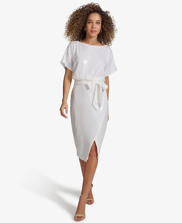 Dkny Women's Short Sleeve Faux Wrap Midi Dress