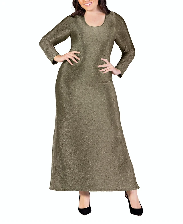 Connected Plus Short-Sleeve Tiered Metallic Sheath Dress
