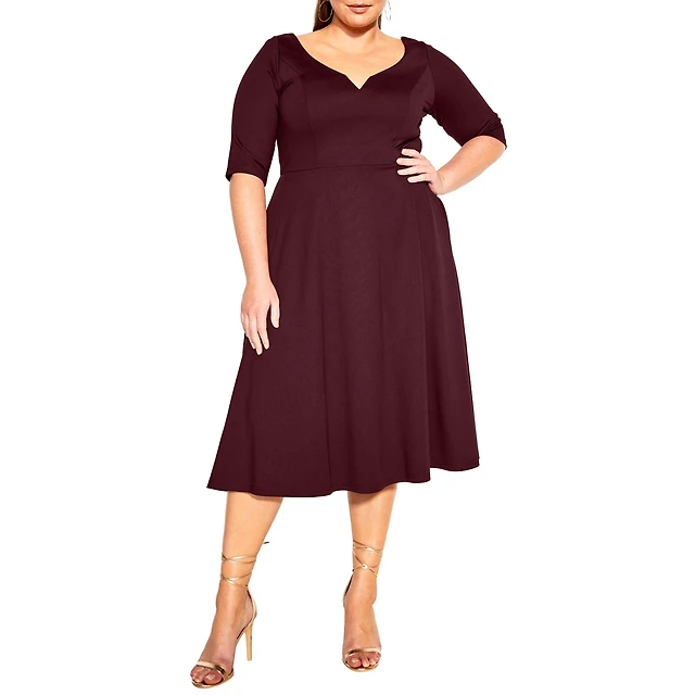 Connected Plus V-Neck Mesh Elbow-Sleeve Dress