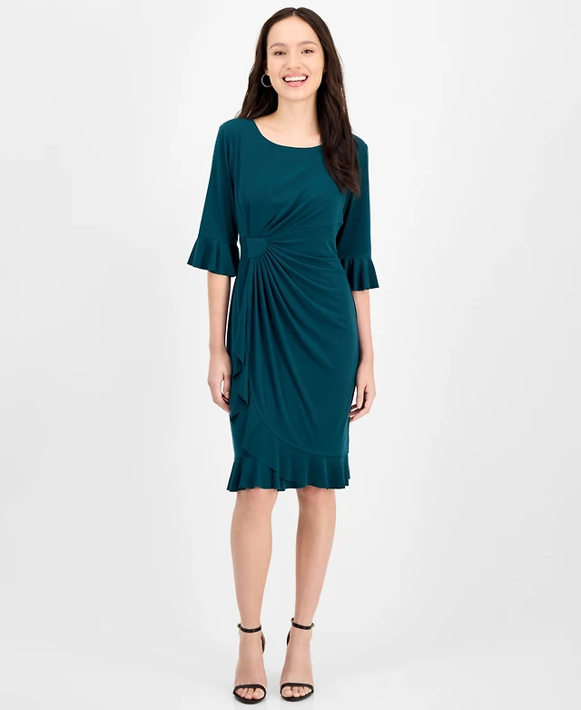 Ny Collection Petite Short Sleeve Ruffle Neck Dress