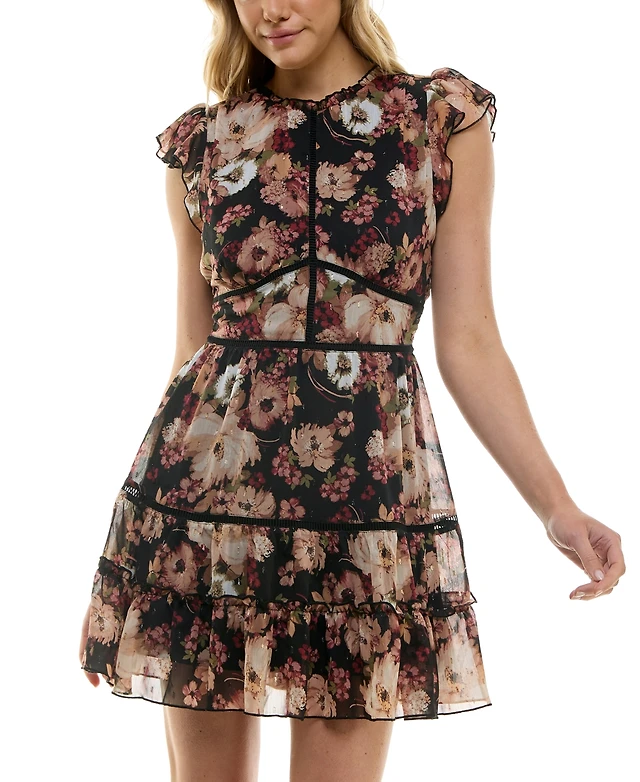 Ny Collection Women's Double Layer Flutter Sleeve Dress