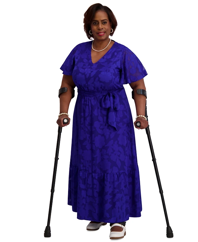 CeCe Women's V-Neck Balloon Sleeve Maxi Dress