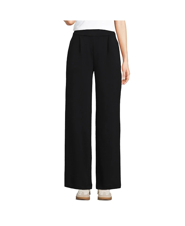 Lands' End Women's Petite Sport Knit High Rise Pleated Wide Leg Pants