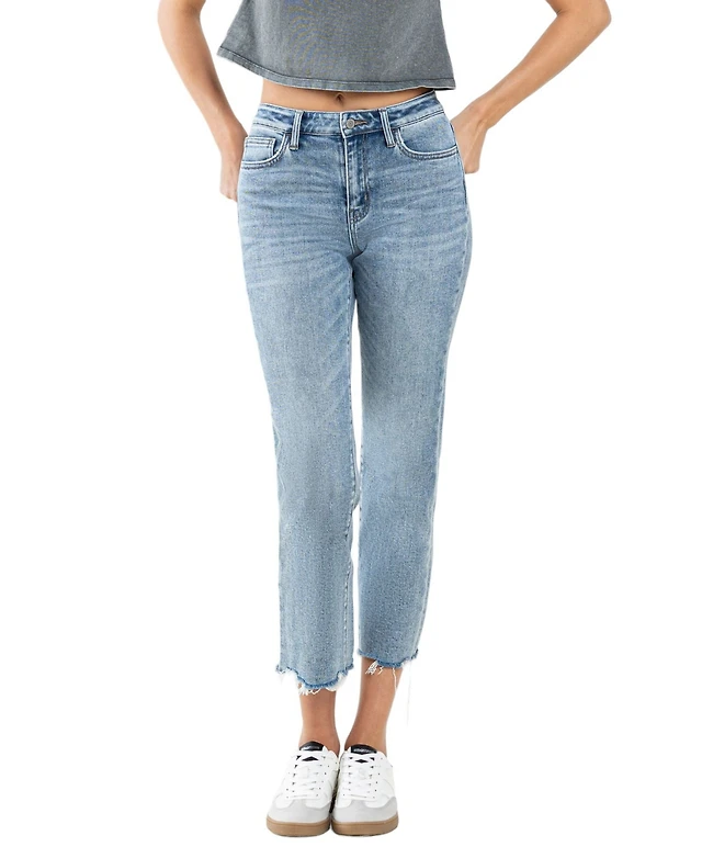 Vervet Women's High Rise Raw Hem Crop Flare Jeans