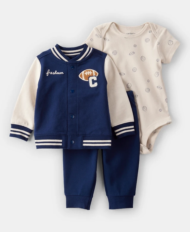 Carter's Baby Boys Cotton Varsity Freshman Little Jacket, Bodysuit & Pants, 3 Piece Set