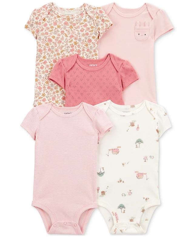 Carter's Baby Girls Short-Sleeve Ribbed Bodysuits, Pack of 5
