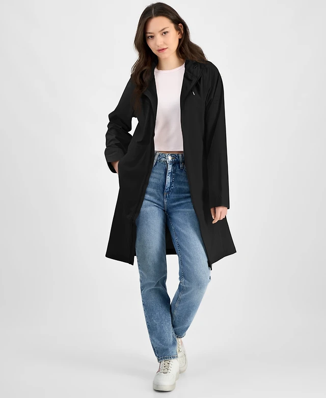 Dkny Women's Hooded Zip-Front Long Anorak Coat
