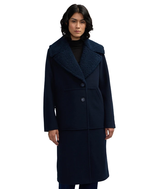 Scotch & Soda Women's Alida Wool Overcoat With Detachable Sherpa Collar