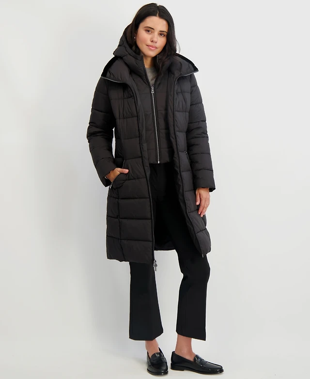 Dkny Women's Bibbed Shawl-Collar Packable Shine Puffer Coat