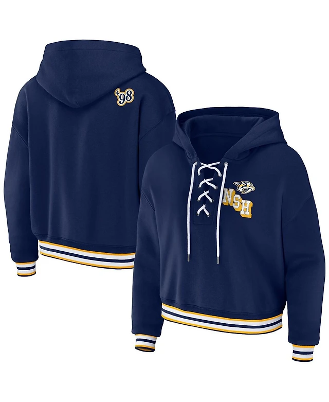 Women's Wear by Erin Andrews Navy Nashville Predators Lace-Up Pullover Hoodie