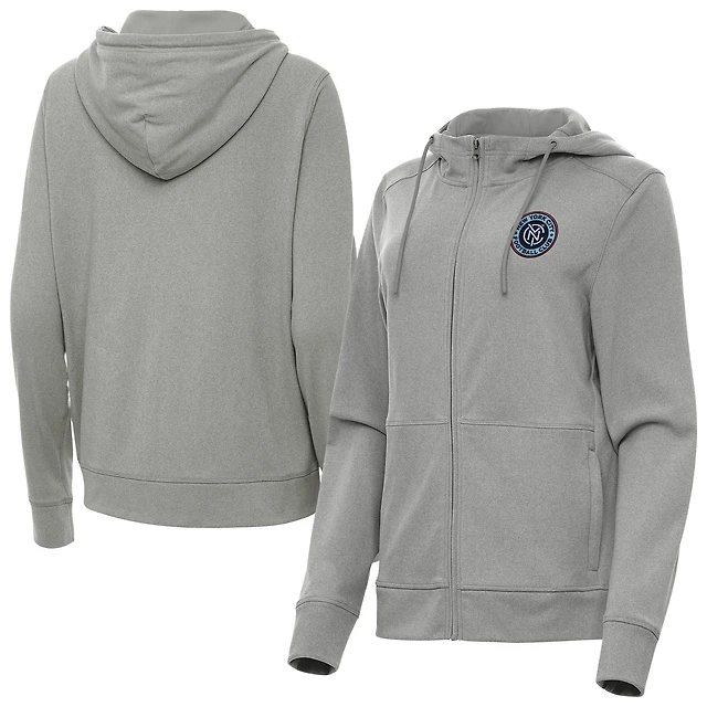 Women's Antigua Heather Gray New York City FC Fleece Full-Zip Seeker Hoodie