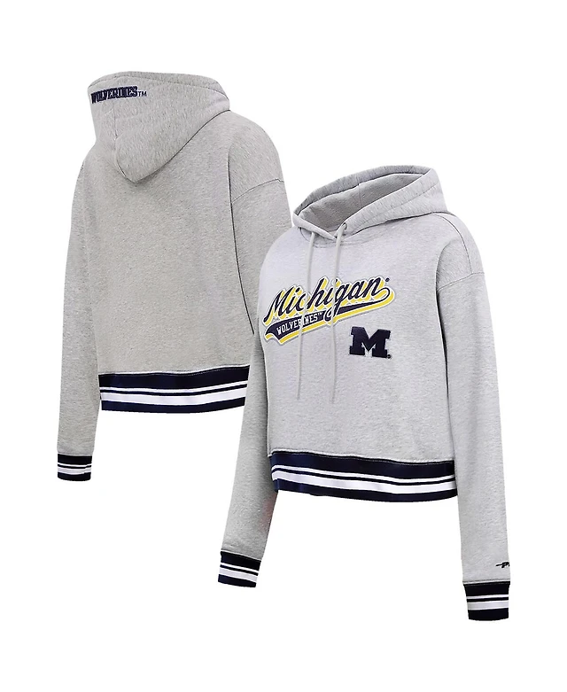 Women's Pro Standard Heather Gray Michigan Wolverines Script Tail Fleece Cropped Pullover Hoodie