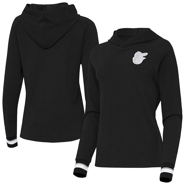 Women's Antigua Black Baltimore Orioles Trek Pullover Hoodie