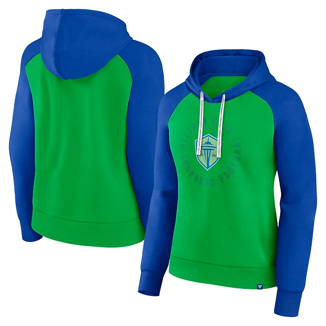 Women's Fanatics Rave Green/Blue Seattle Sounders FC Instep Raglan Pullover Hoodie