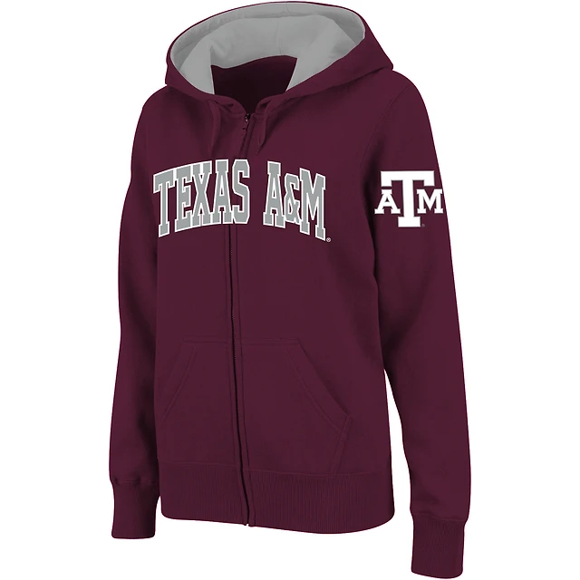 Women's Stadium Athletic Maroon Texas A&M Aggies Arched Name Full-Zip Hoodie
