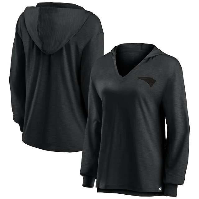 Women's Fanatics New England Patriots Blackout Slub Hoodie V-Neck Long Sleeve T-Shirt