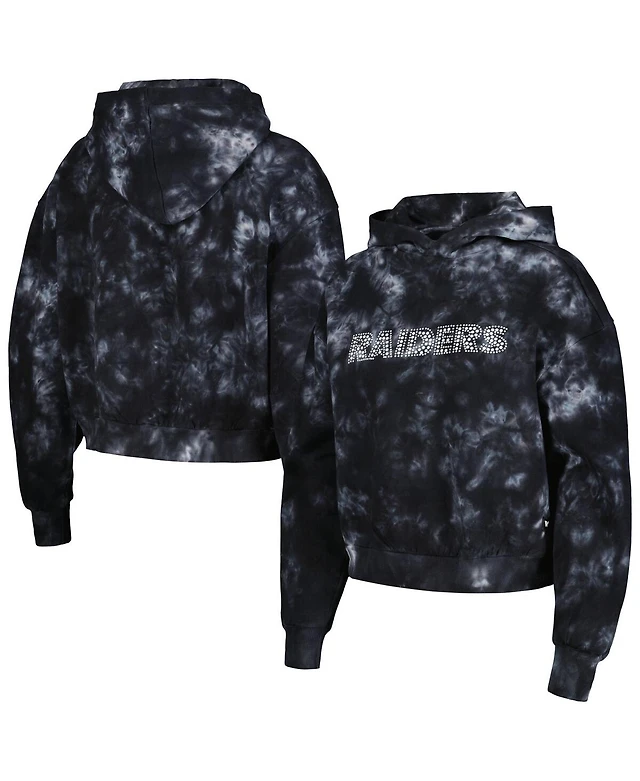 Women's The Wild Collective Black Las Vegas Raiders Tie-Dye Cropped Pullover Hoodie