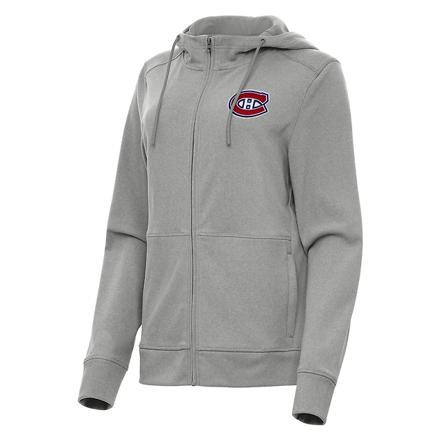 Women's Antigua Heather Gray Montreal Canadiens Seeker Full-Zip Hoodie