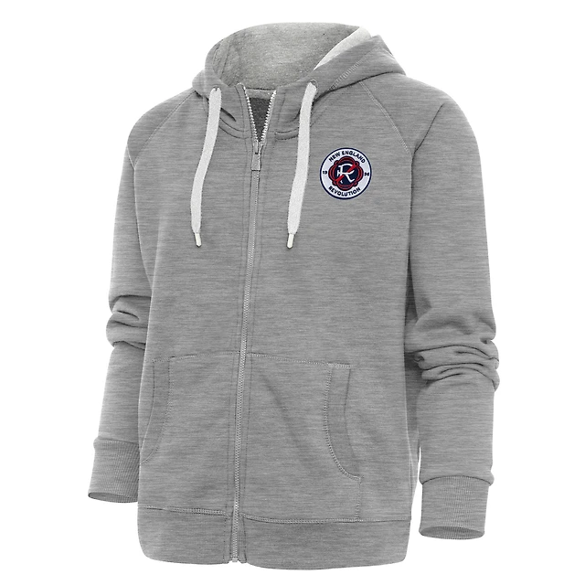 Women's Antigua Heather Gray New England Revolution Logo Victory Full-Zip Hoodie