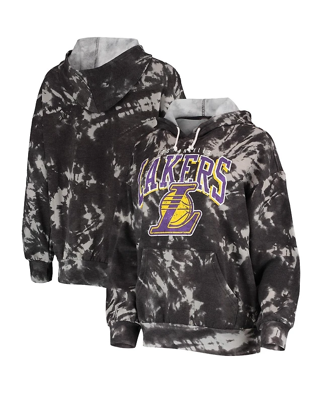 Women's Majestic Threads Black Los Angeles Lakers Burble Tie-Dye Tri-Blend Pullover Hoodie