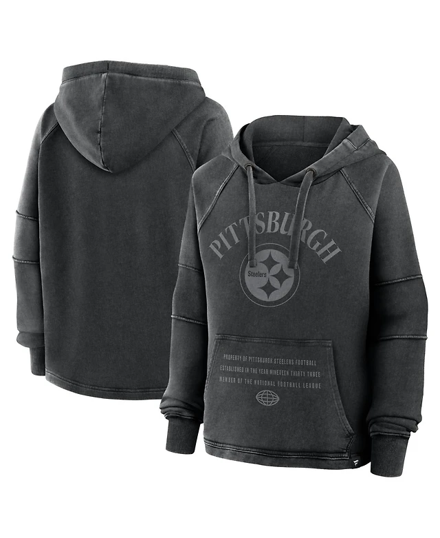 Women's Fanatics Charcoal Distressed Pittsburgh Steelers Lightewight Modest Crop Lounge Helmet Arch Pullover Hoodie