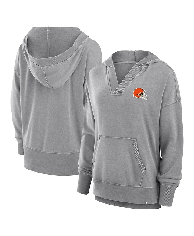 Fanatics Women's Heather Gray Cleveland Browns Initiative Snow Wash French Terry V-Neck Pullover Hoodie