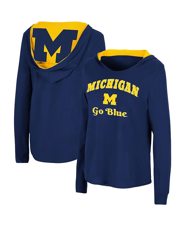 Women's Colosseum Navy Michigan Wolverines Catalina Hoodie Long Sleeve T-shirt
