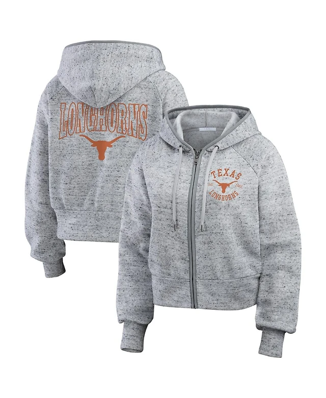 Wear by Erin Andrews Women's Heather Gray Texas Longhorns Speckle Double-Hit Raglan Full-Zip Hoodie