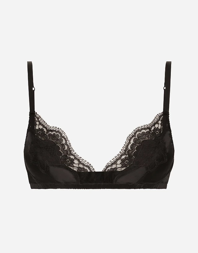 Soft-cup satin bralette with lace detailing