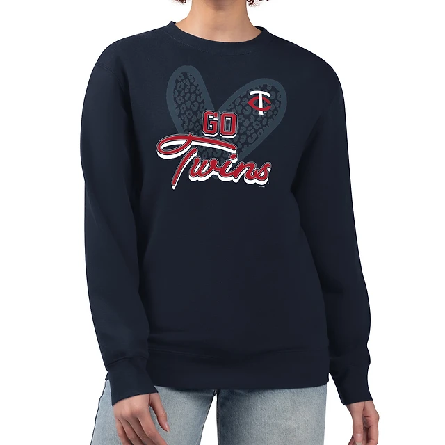 Women's G-III 4Her by Carl Banks Navy Minnesota Twins Leopard Heart Pullover Sweatshirt