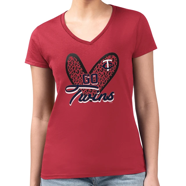 Women's G-III 4Her by Carl Banks Navy Minnesota Twins Super-Slim Fit Lightweight Leopard Heart V-Neck T-Shirt