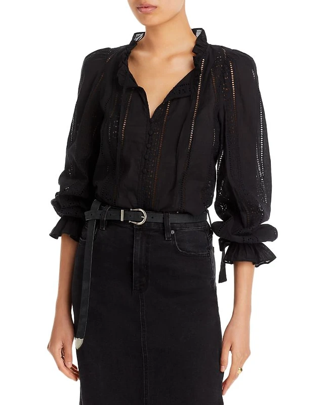 Embroidered Eyelet Long Sleeve Top - Exclusive