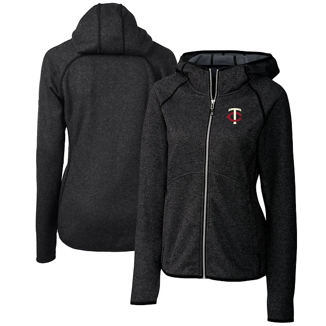 Women's Cutter & Buck Heather Charcoal Minnesota Twins Mainsail Sweater Knit Full-Zip Hoodie