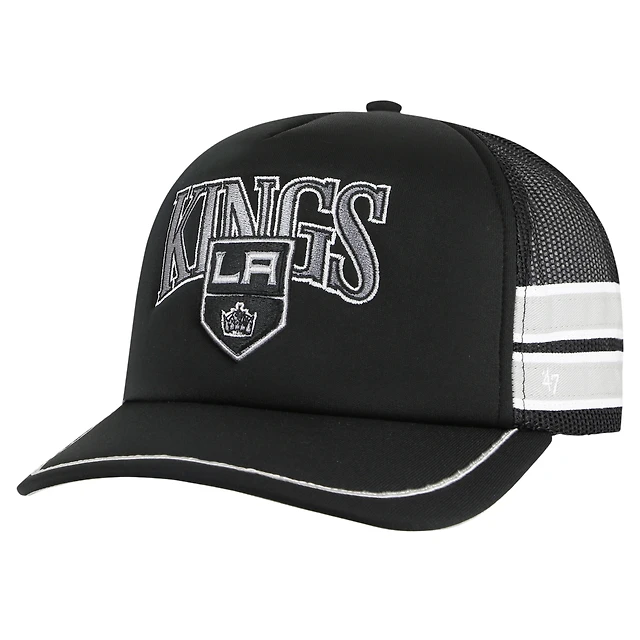 Men's '47 Black Los Angeles Kings Sideband Stripes Trucker Snapback Hat