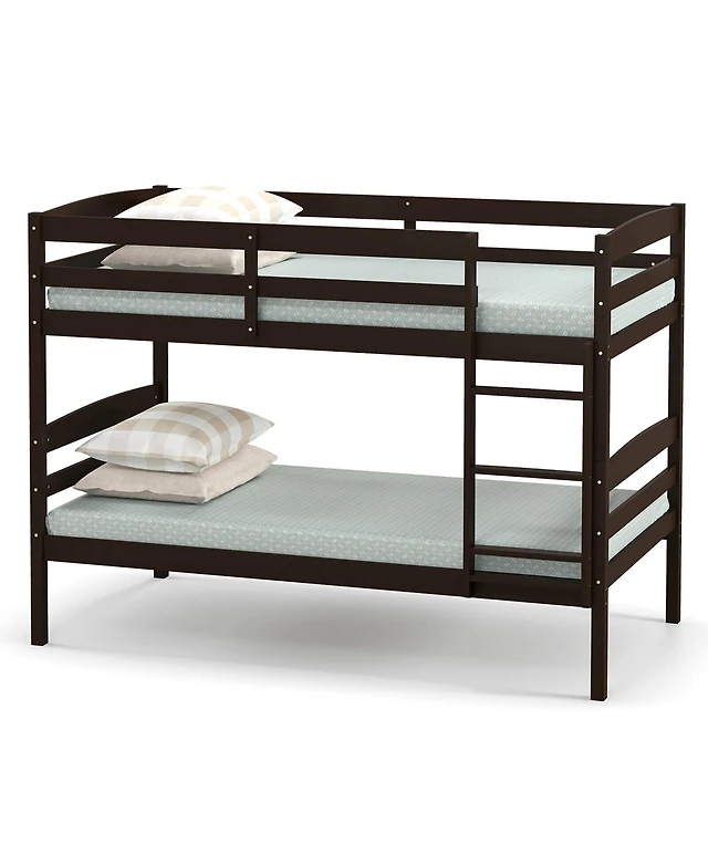 Gymax Twin Over Bunk Bed Wooden Convertible Into 2 Beds High Guardrails