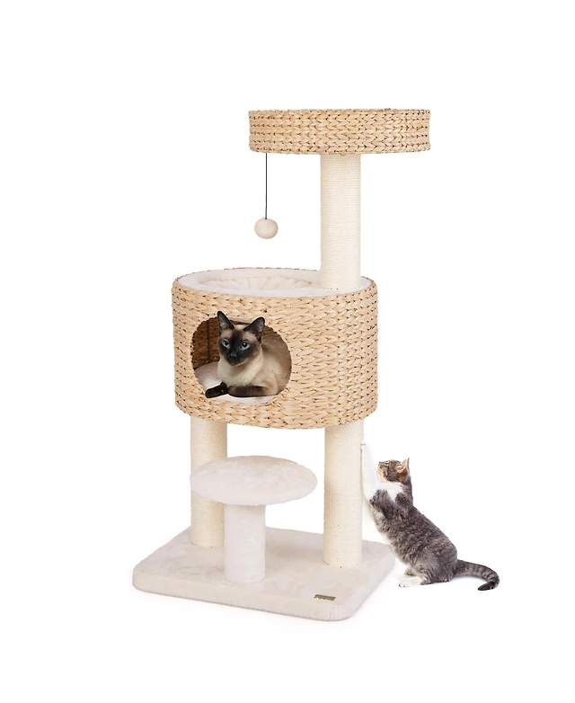 Cattail Cat Tower with Sisal Scratching Posts & Soft Hammock Cozy & Fun Multi-Level Cat Tree