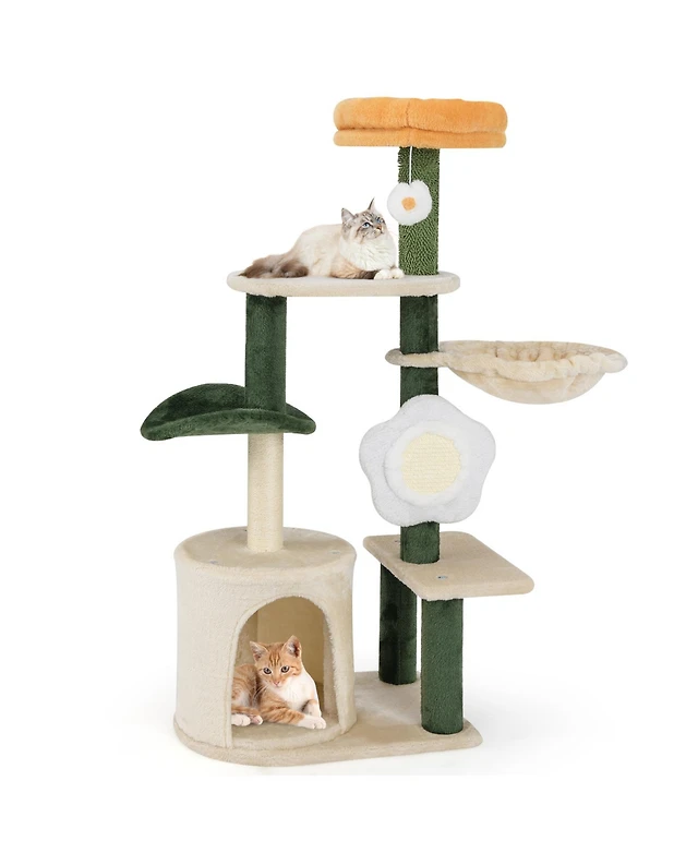 Gymax 45'' Tall Cat Tree Flower Multi-level Pet Activity Center Furniture w/Sisal Post