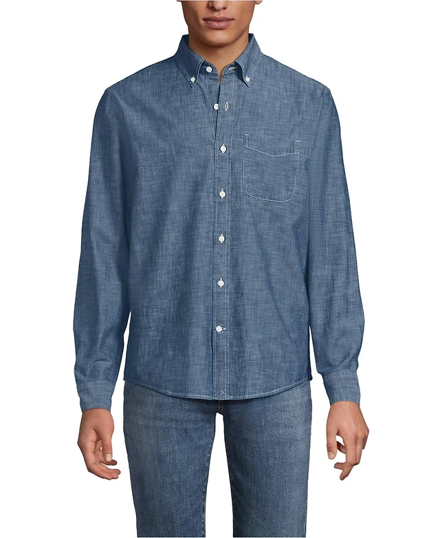 Lands' End Men's Short Sleeve Button Down Chambray Shirt