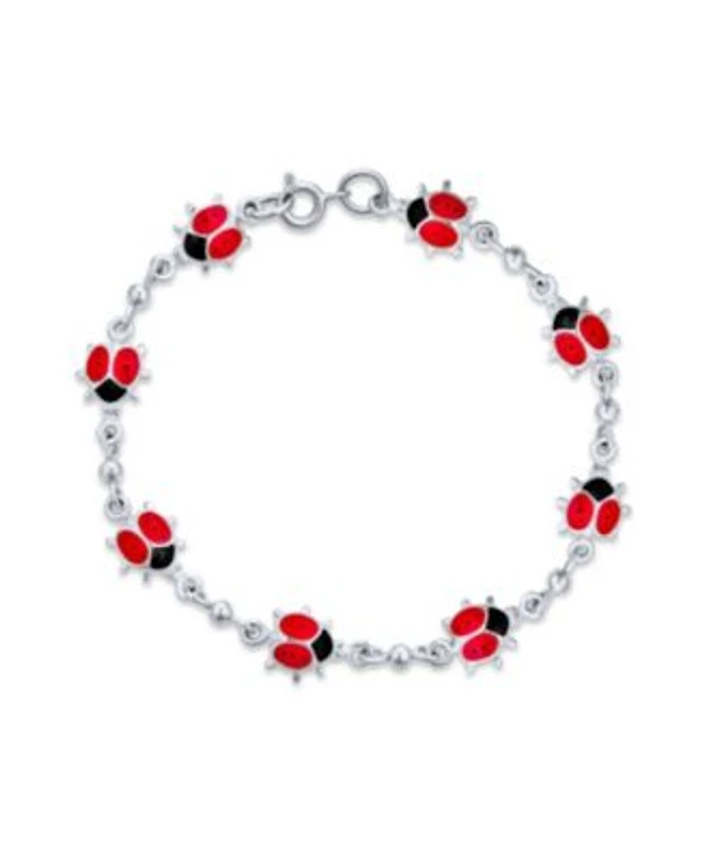 Bling Jewelry Good Luck Garden Lucky Multi Station Charms Enamel Red Ladybugs Charm Bracelet .925 Sterling Silver 7.5 Inch