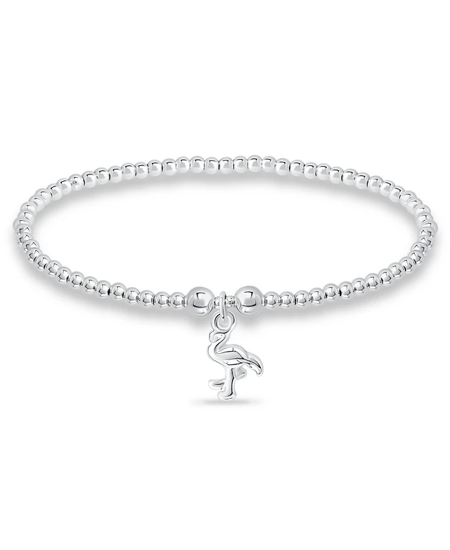 Bead Flower Charm Bracelet in Silver Plate