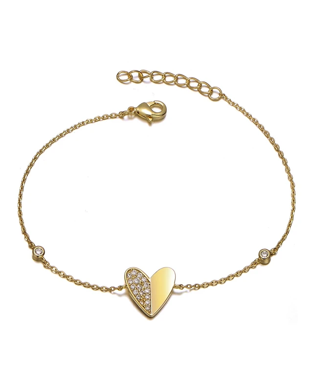 14K Gold Plated with Green Cubic Zirconia Heart Charm Bracelet