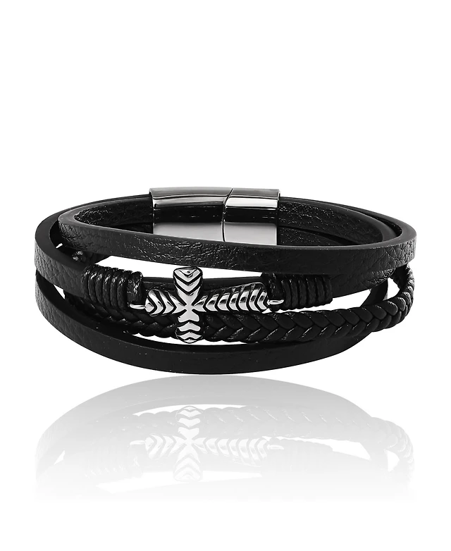 Lucky Brand Stainless Steel Triple Row Black Cord Bracelet - 8.25"
