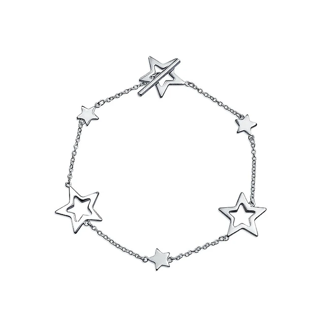 Bling Jewelry Celestial American Usa Patriotic Open Stars Rock Star Bracelet .925 Sterling Silver Toggle Clasp