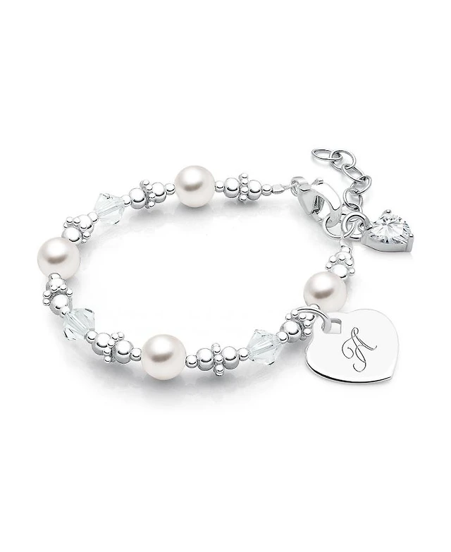 Tiny Blessings Children's Sterling Silver Crystals & Pearls Engraved Initial Girls' 5.25" Bracelet