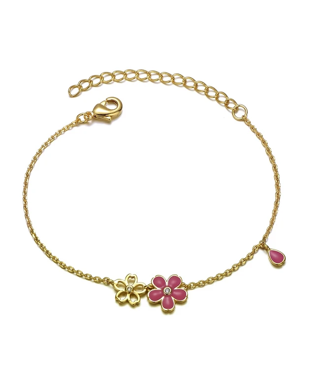 GiGiGirl Kids 14k Gold Plated Pink Flower Charm Bracelet