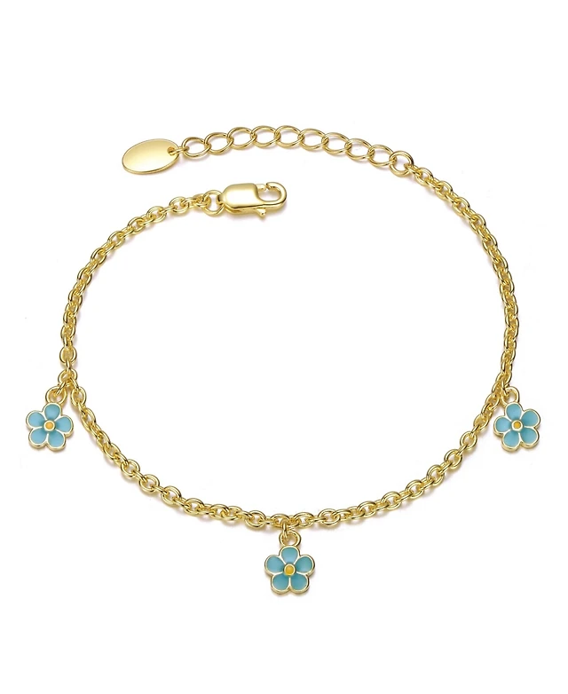 GiGiGirl Sterling Silver 14K Gold Plated with Colored Enamel Daisy Charm Bracelet