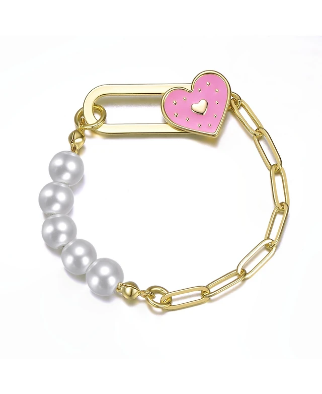 GiGiGirl 14K Gold Plated Bracelet with Pearls and Enamel Heart Clasp