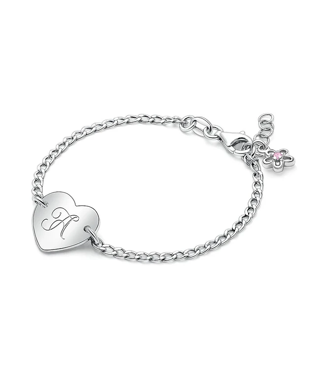 Tiny Blessings Little Girls Children's Sterling Silver Lovely Heart Id Bracelet & Engraved Initial 6"
