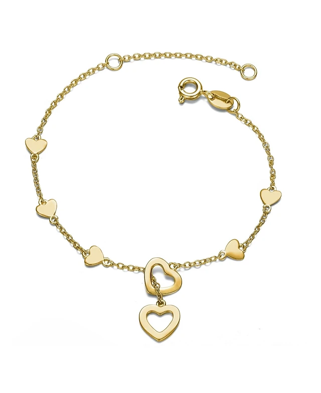 GiGiGirl 14k Yellow Gold Plated Beaded Heart Charm Station Kids Bracelet - Adjustable w/ Extension Chain