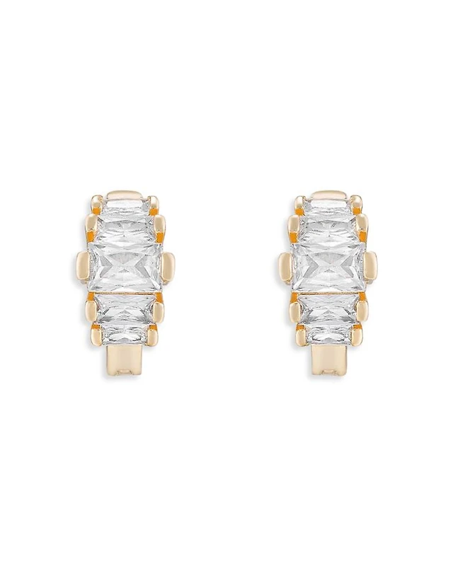 Diamond Baguette & Round Huggie Hoop Earring in 14K White Gold, 2.0 tcw